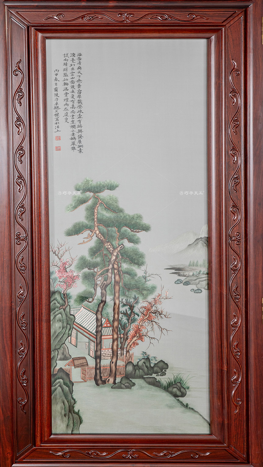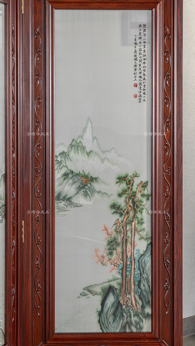 蘇繡四扇屏(山林松柏)