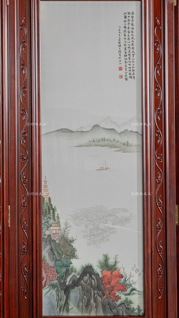 蘇繡四扇屏(山林松柏)